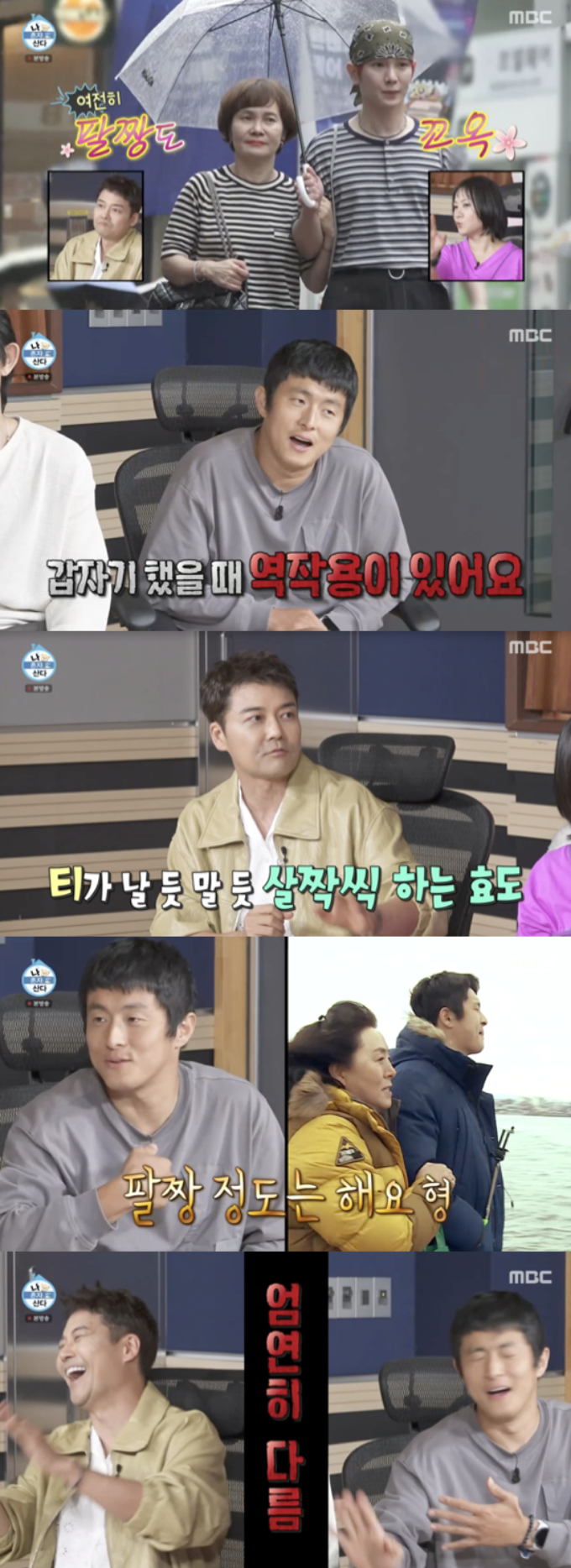 그러나 기안84는 "저는 엄마와 팔짱 정도는 한다. 형과 저는 엄연히 다르다. 업어주고 사랑한다 이런 걸 못하지만 팔짱 끼고는 걸을 수 있다"라며 선을 그어 전현무를 당황시켰다.
