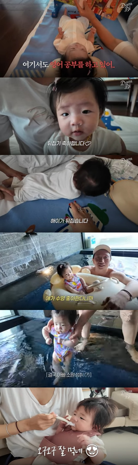 19일 공개된 유튜브 채널 '담비손 DambiXon'에는 '뒤집기에 이어 첫 이유식까지 폭풍 성장하는 해이'라는 제목의 동영상이 공개됐다.