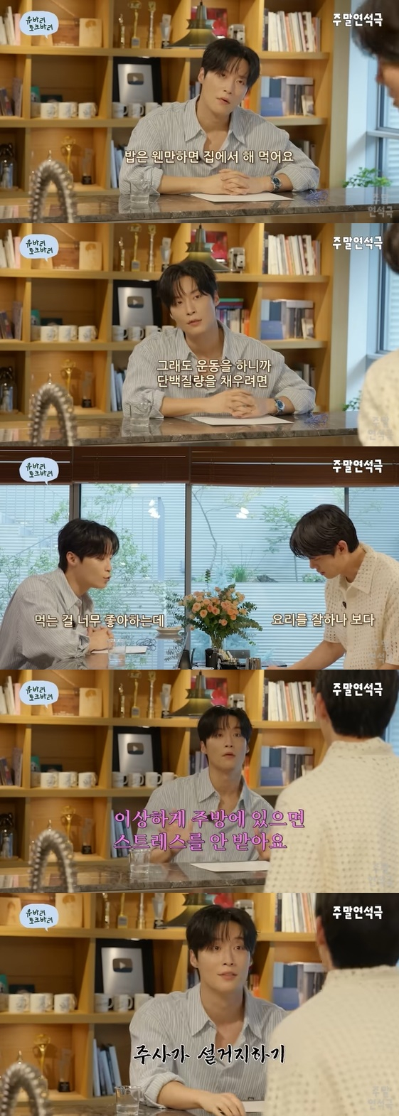 이어 "먹는 걸 너무 좋아하는데 이상하게 주방에 있으면 스트레스를 안 받는다. 그래서 제가 여기 오면 술 먹다가 주사가 설거지하는 거다"라고 고백해 웃음을 자아냈다.
