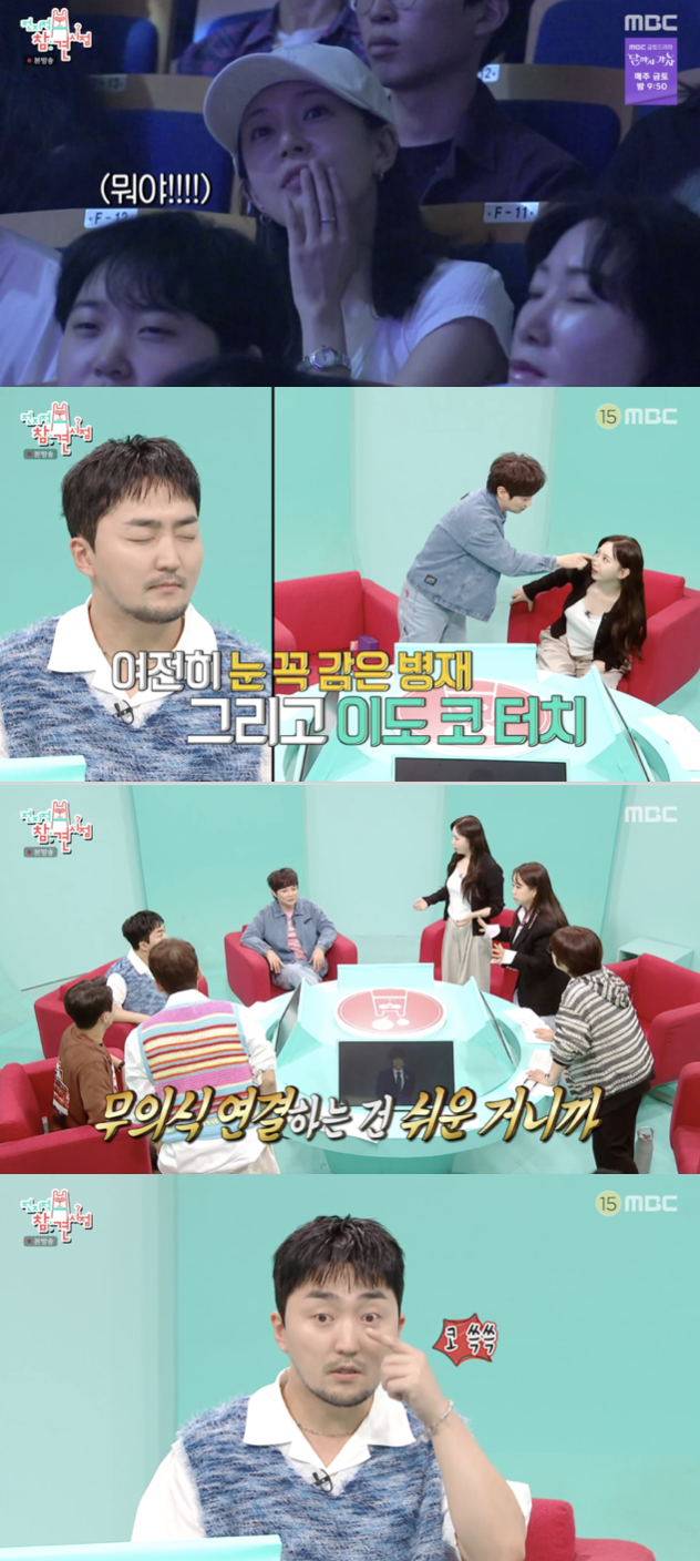 최현우의 최면술은 '전참시' 스튜디오에서도 이어졌다. 그는 유병재에게 최면을 건 뒤 이투스 지리 강사 이도의 코를 만지고는 유병재를 깨웠다. 그러나 정작 최현우의 손길을 받은 건 이도였음에도, 깨어난 유병재는 자신이 코를 만졌다고 주장해 스튜디오를 소름 돋게 했다.