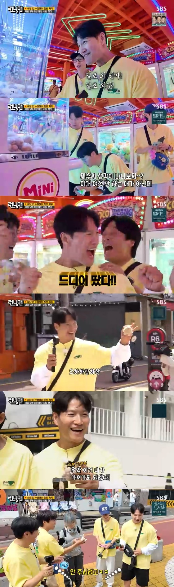 그런가 하면 김종국은 키링을 5개 매단 시민을 발견한 뒤 "우와 이거 내가 가져가도 되겠다"라고 반색해 모두를 폭소케 했다. 그는 자신이 뽑은 인형을 시민에게 빼앗길세라 슬그머니 감췄고, 제작진은 "안 주시려고 하시냐"라고 지적해 웃음을 안겼다.