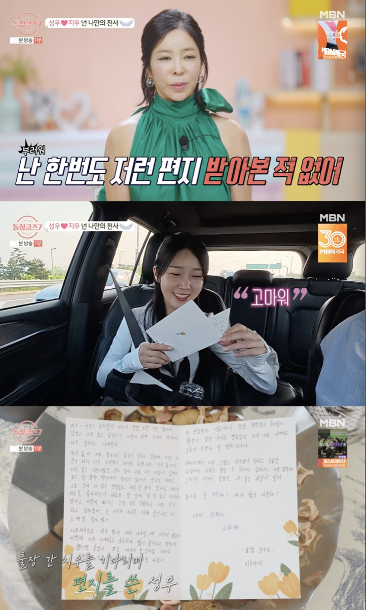 이날 두 사람은 약 2주 만에 다시 만나 애틋한 시간을 보냈다. 박성우는 한지우를 위해 직접 손 편지를 준비하며 진심 어린 애정을 드러냈고, 이를 지켜본 스튜디오의 MC 이혜영은 "난 한 번도 저런 편지 받아본 적 없어"라며 부러움을 감추지 못했다.