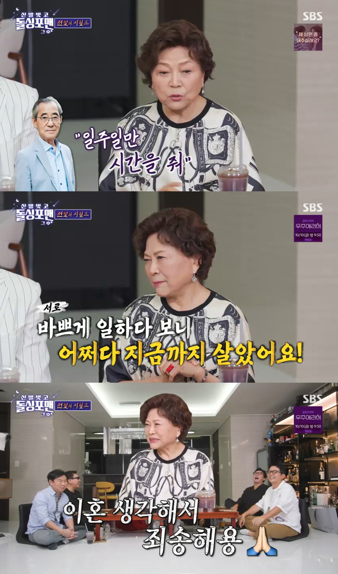 '돌싱포맨' 배우 김용림이 남편 남일우와 이혼을 생각했었다고 전했다.