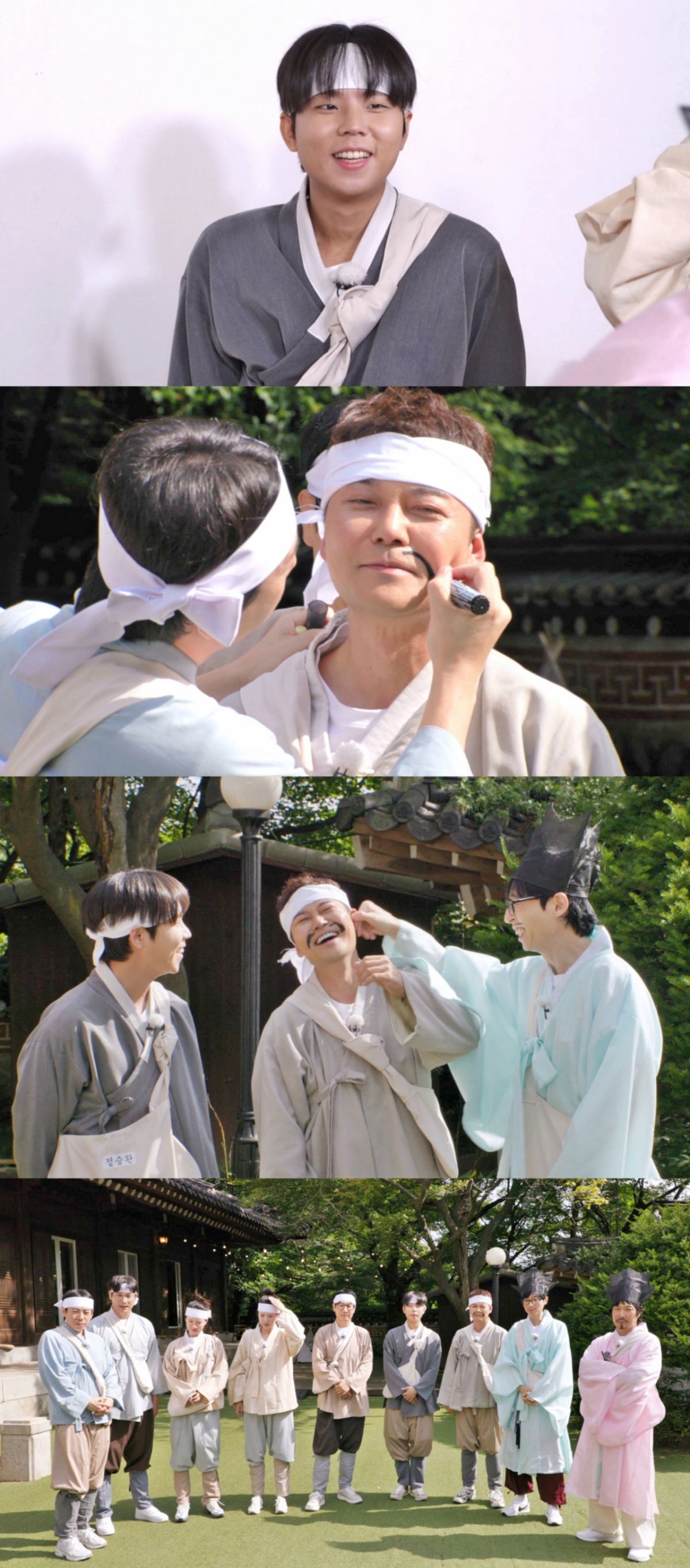최근 진행된 녹화에서 추석을 맞아 유재석과 하하는 대감 차림, 나머지 멤버들은 익숙한 노비 차림으로 등장했다. 이어 매회 자체 최고 시청률을 경신하고 있는 SBS 화제의 오디션 예능 '우리들의 발라드'의 MC 전현무와 가수 정승환이 노비로 합류했다. 신혼여행으로 자리를 비운 김종국의 공백을 채운 것.