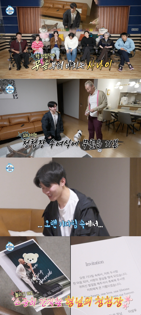 도운은 "(청첩장을) 가보로 남기겠습니다. 형님"이라며 비장하게 무릎을 꿇고 청첩장을 받아 웃음을 자아냈다.