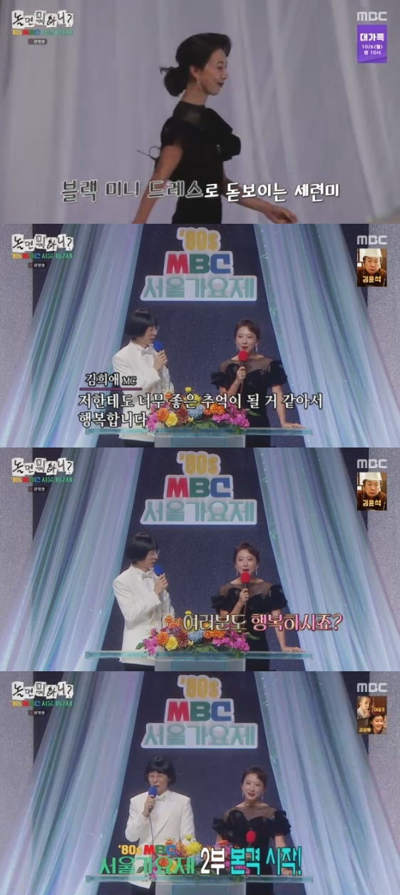 이에 김희애는 "오늘 80년대 콘셉트로 메이크업, 헤어, 의상까지 저도 좀 고민을 많이 했었는데 막상 이렇게 입고 여러분과 함께하니까 저한테도 너무 좋은 추억이 될 것 같아서 행복하다"라고 소감을 전했다.