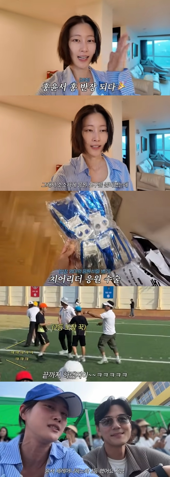 그는 "운동회에서 오전에 모든 종목을 끝내고 아이들이 급식을 먹는다. 그래서 우리 때처럼 도시락을 쌀 필요는 없는데 윤서가 2학기 반장이 됐다. 제가 반장 엄마다"라고 뿌듯한 표정을 지었다. 이어 "소소하게 응원 도구를 준비했다"며 파란색 치어리더 응원 수술을 공개했다.