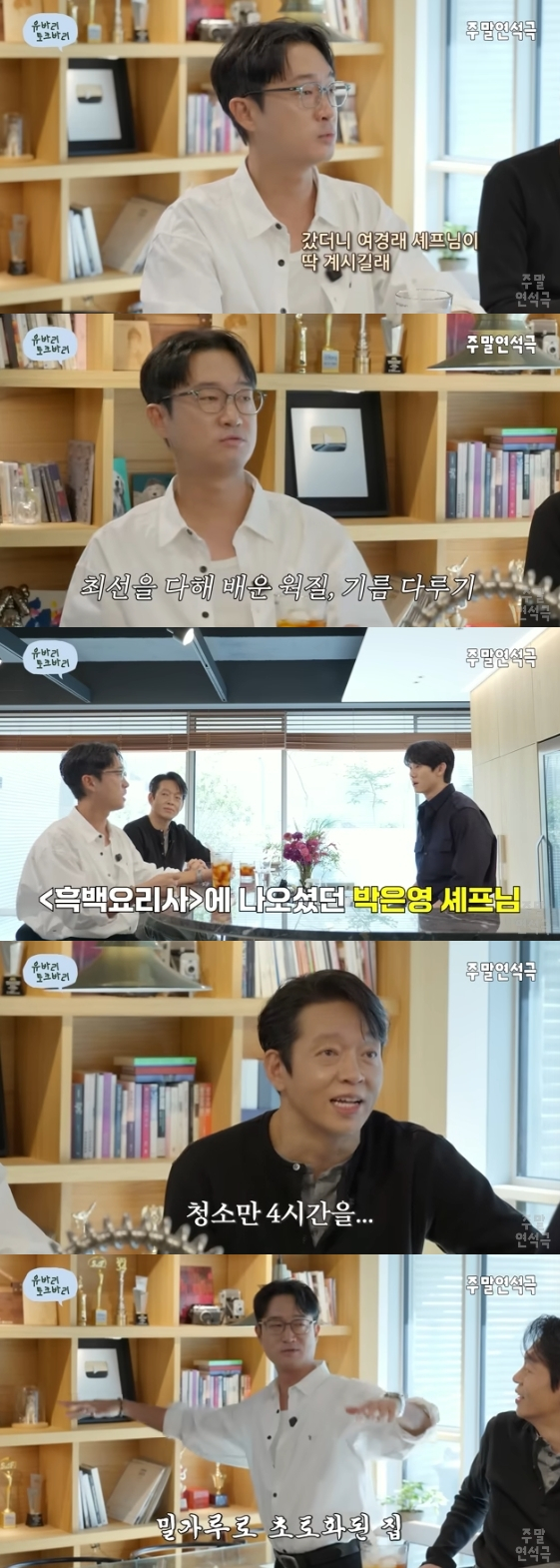 이때 박지환은 "수타면이 쉽지 않다는 걸 아니까 우진이 형이 재료를 집에 가져가서 연습하다가 30분 연습하고 청소만 4시간 했다더라"라고 폭로해 모두를 폭소케 했다.