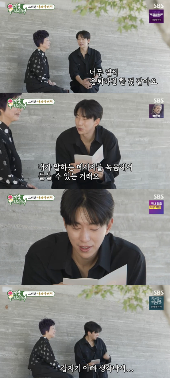 5일 방송된 SBS 예능 프로그램 '미운 우리 새끼'에서는 배우 윤현민이 추석을 맞아 새어머니와 함께 돌아가신 아버지가 계신 봉안당을 찾아가 근황을 전하는 모습이 공개됐다.