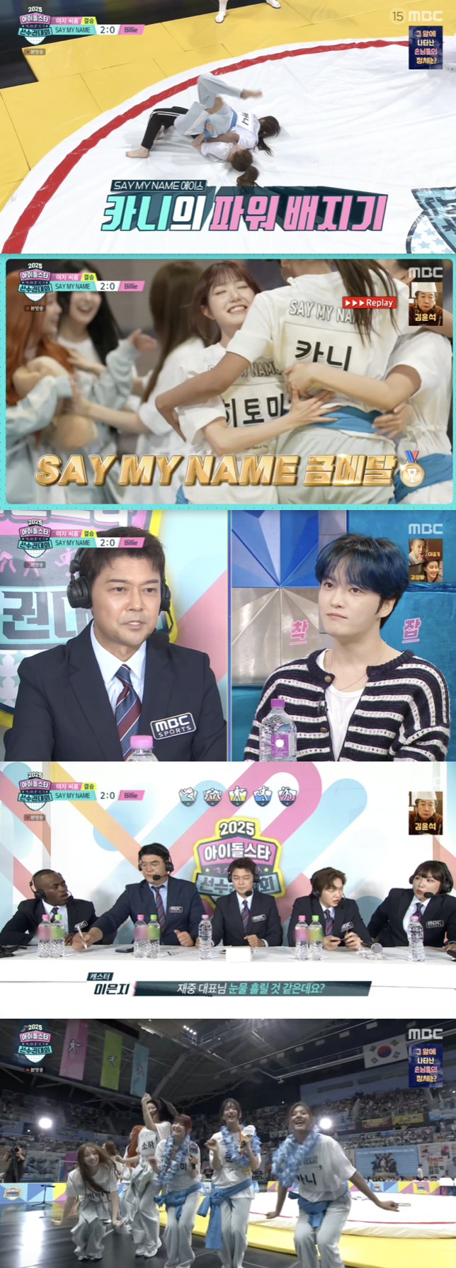 6일 방송된 MBC 예능프로그램 '2025 추석특집 아이돌스타 선수권대회'(이하 '아육대')에서는 그룹 세이마이네임(SAY MY NAME)이 여자 씨름 경기에서 최종 우승을 차지했다.