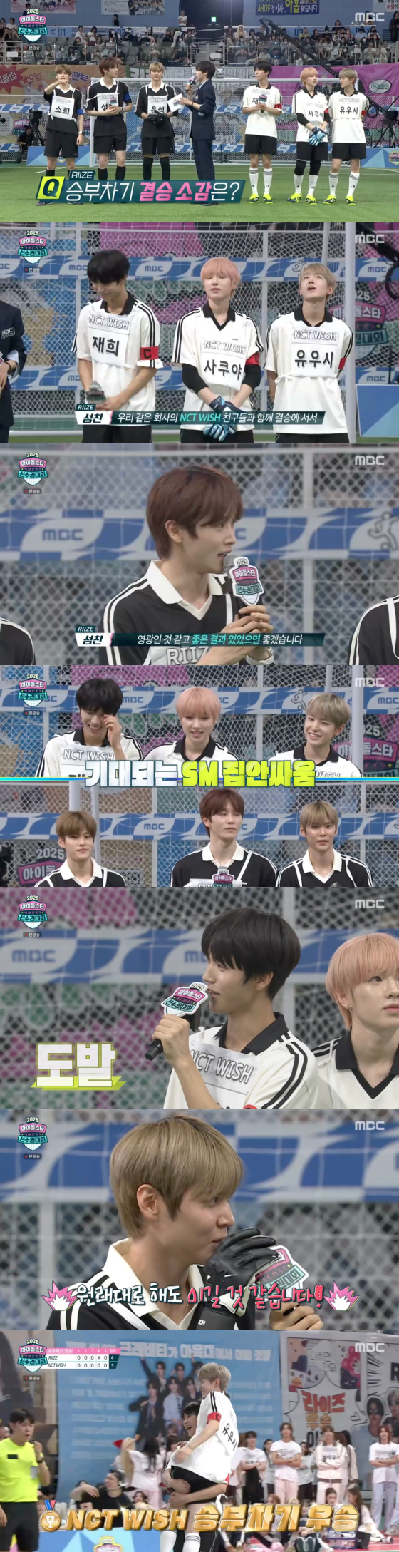 7일 방송된 MBC '2025 추석특집 아이돌스타 선수권대회' 2부에서는 라이즈와 NCT WISH가 승부차기 결승전에서 만난 모습이 그려졌다.