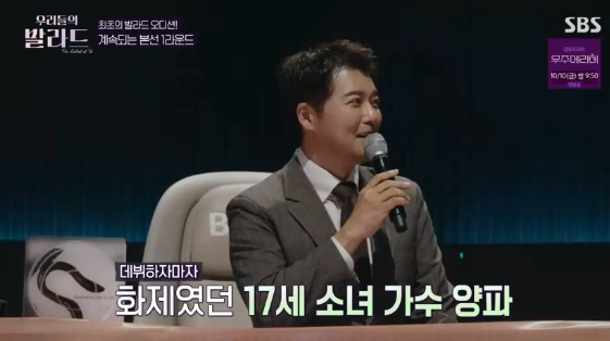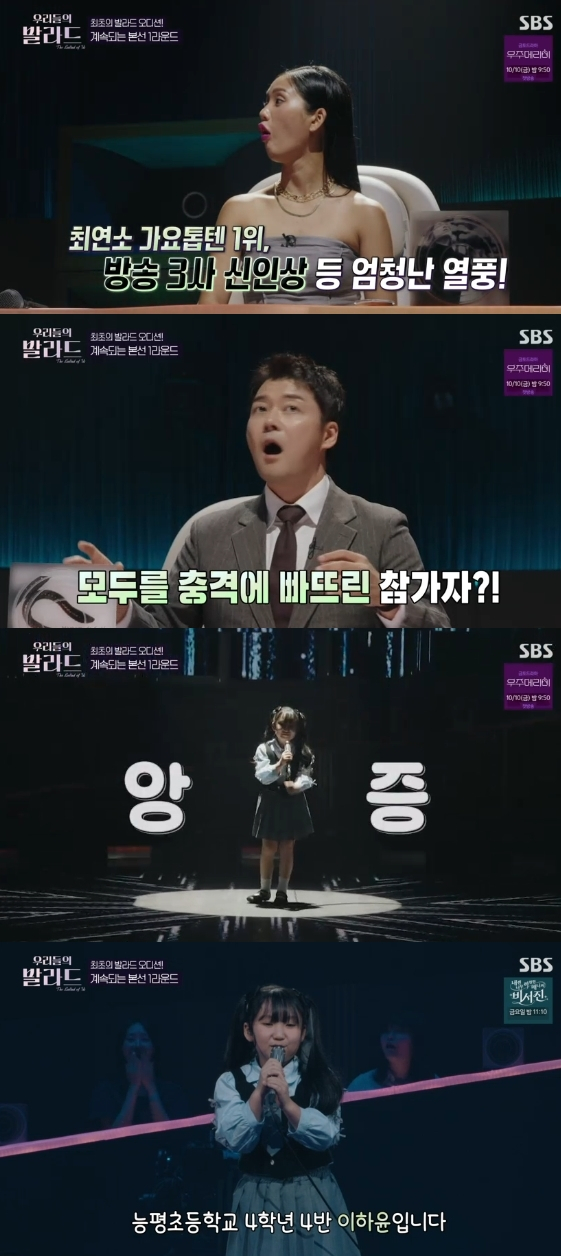7일 방송된 SBS 예능 프로그램 '우리들의 발라드'에는 10살 최연소 참가자가 출연해 양파의 '애송이의 사랑'을 열창했다.