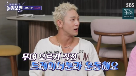 백호는 "무대 위에서 함성 받는 순간이 저에게 원동력이 된다"며 "탈의할 때 계산한다. 너무 내려가면 보기 안 좋으니까 바지 허리 사이즈를 미리 조절해 놓는다. 바지가 너무 내려가면 흉할 수 있어서 미리 조절한다"라고 말해 웃음을 안겼다.