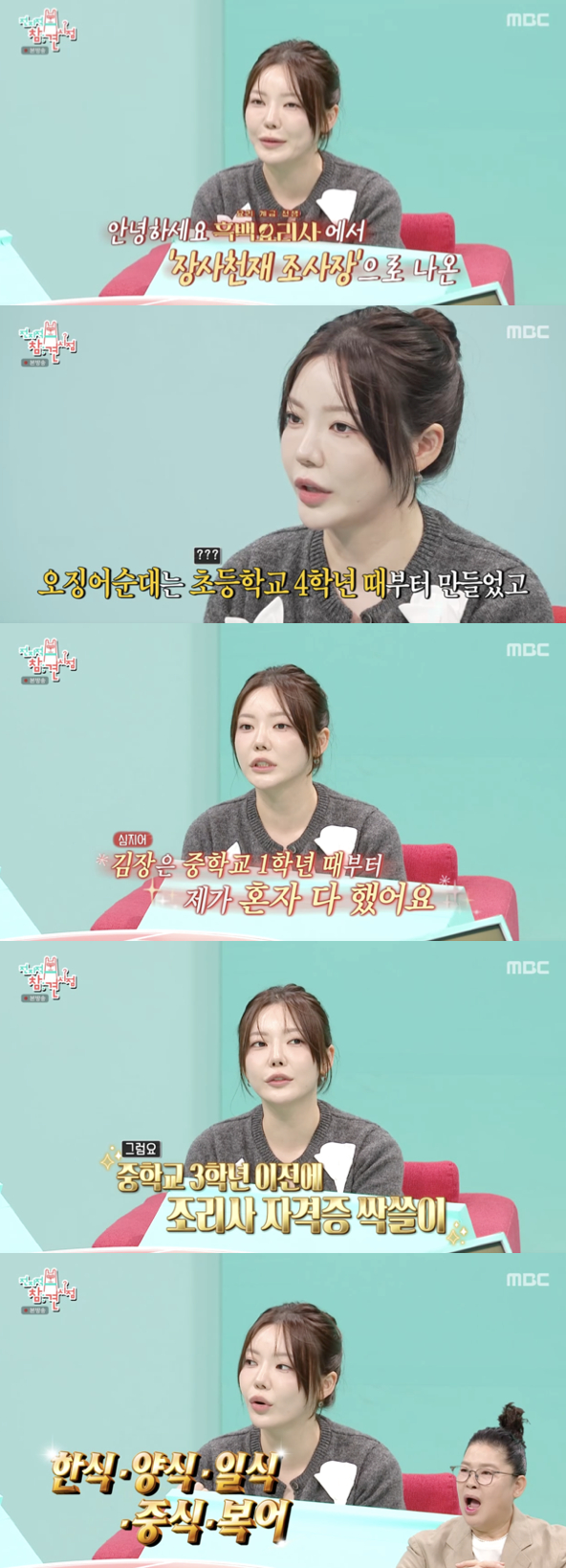 이어 그는 "중학교 1학년 때부터 제가 김장을 다 해서 먹었다. 중학교 들어갈 때쯤 버스에서 요리 학원 광고를 듣고 중학교 올라가던 겨울 방학에 요리 학원을 등록했다"라고 밝혔다.