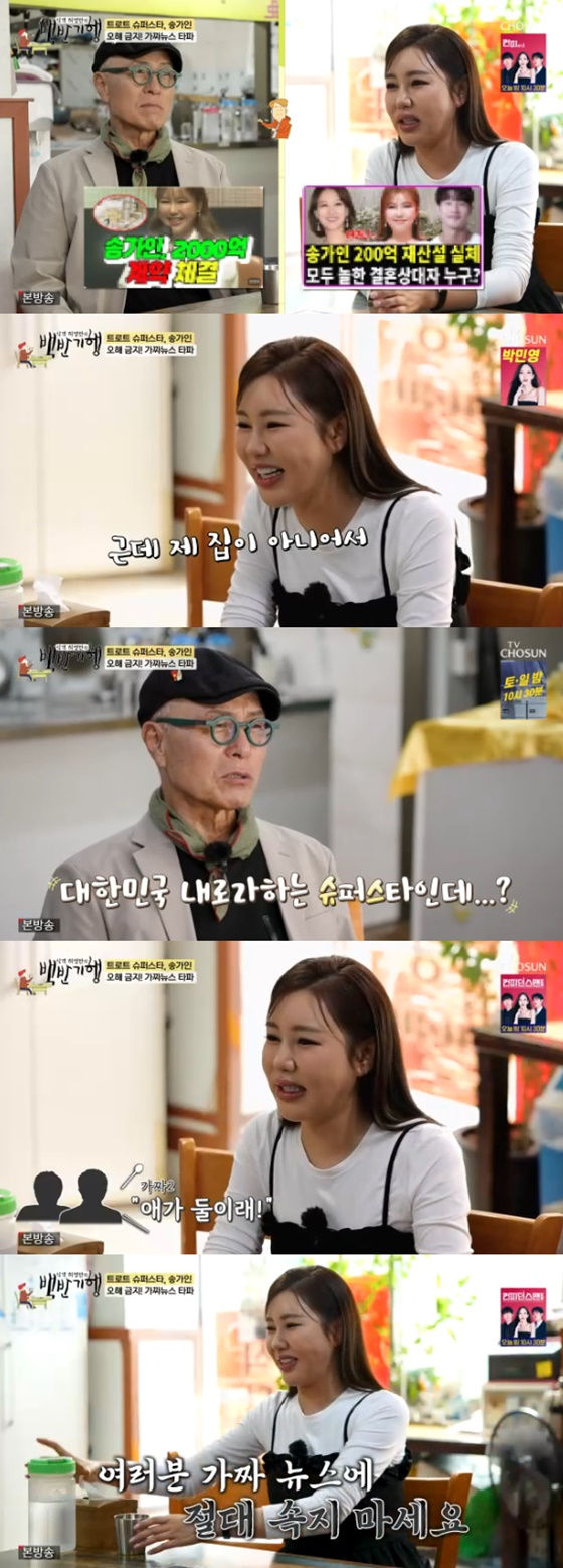 이를 들은 허영만이 "강남?"이라고 되묻자 송가인은 "근데 내 집이 아니어서 전세로 살고 있다"고 밝혔다.