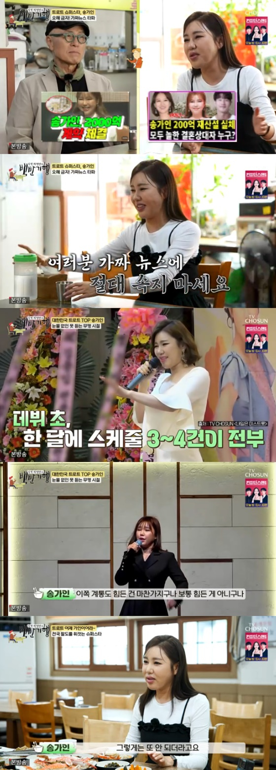 또한 송가인은 "또 '누구랑 결혼했다더라', '아기 둘 낳았다더라' 별 소리가 많다"며 "나 아직 결혼 안 했다"고 설명했다.