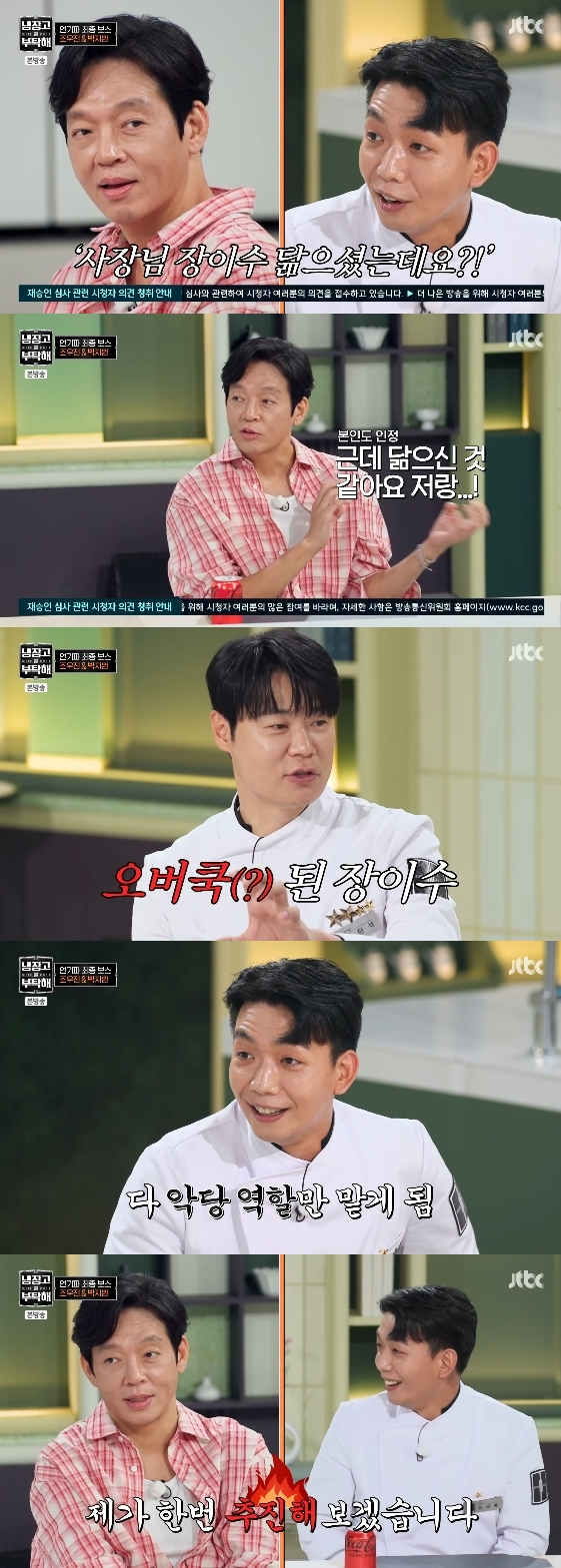 이에 조우진은 "양분할 화면으로 비교해 보면 좋을 것 같다"라고 제안했고, 화면에 비친 두 사람의 놀랍도록 똑닮은 외모에 출연진들은 감탄을 금치 못했다. 조우진은 "추석 때 가족 만난 것 같다"라고 혀를 내둘렀고, 최현석은 "임태훈이 위하준과 닮은꼴이라고 했을 때도 '흘러내린 위하준'이었는데 장이수도 '오버쿡된 장이수'다"라고 꼬집어 웃음을 자아냈다.