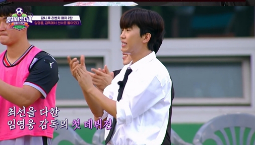 감독석에 정장 차림으로 앉은 임영웅은 경기 전부터 프로 못지않은 분석과 준비력을 보였다. 경기에 앞서 진행된 훈련에서는 직접 발로 뛰며 선수들의 기량을 파악했고, 상대 팀 이동국 감독의 전술을 세세히 파악해 필승 전략도 세웠다. 또한 그는 선수들에게 "지나간 상황에 아쉬워하지 말고, 항의하지도 말자. 밖에서 우리가 하겠다"라며 리더다운 카리스마를 보여줬다.