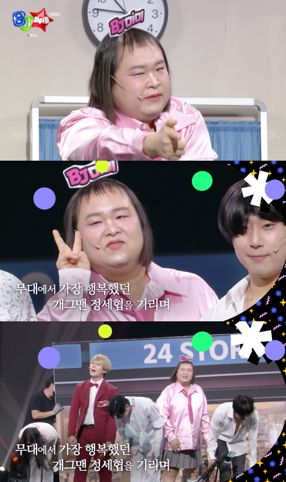 지난 12일 방송된 KBS 2TV '개그콘서트'에서는 고 정세협이 생전 무대에 올라 꾸민 'BJ 레이블' 코너가 공개됐다.