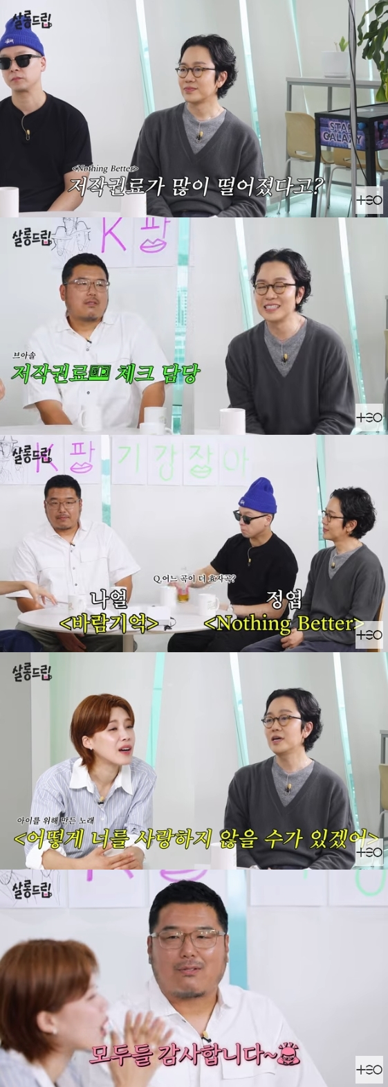 정엽은 '낫띵 배럴(Nothing Better)의 저작권료에 대해 "예전에 비해 확실히 많이 떨어진 것 같다. 제가 저작권료 나오는 걸 잘 안 보는 편이다. 저작권료 체크는 영준이가 잘한다"라고 떠넘겼다.