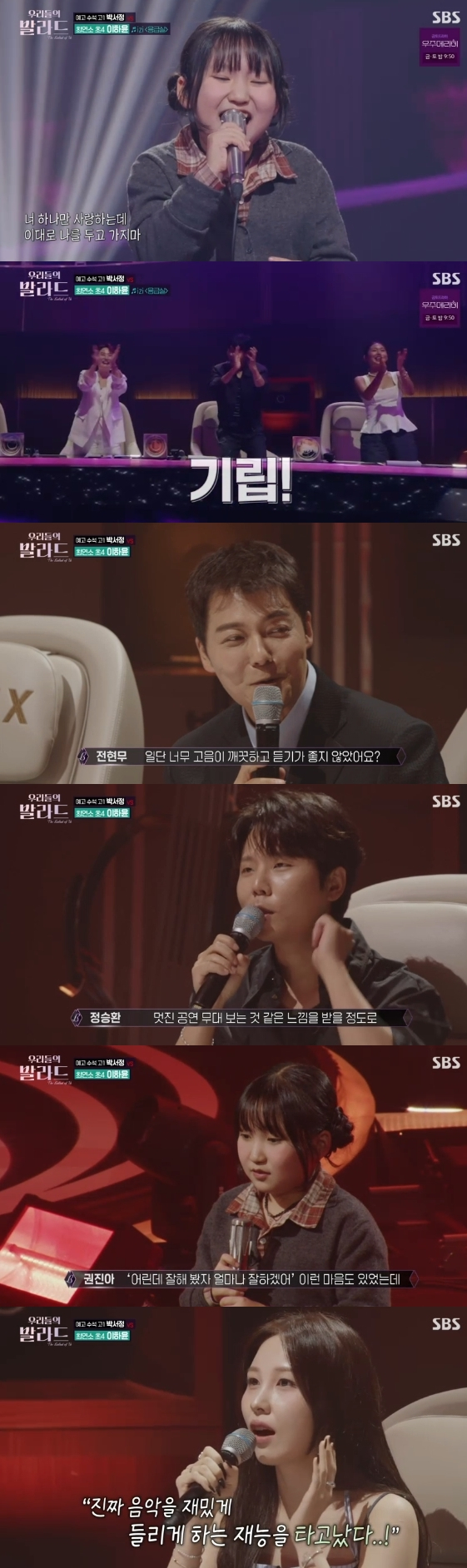 14일 방송된 SBS 예능 프로그램 '우리들의 발라드' 4회에서는 참가자들의 1 대 1 대결이 펼쳐지는 2라운드 무대가 공개됐다. 참가자들은 첫사랑, 이별, OST 등 다양한 키워드 중 하나를 골라 무대를 선보인 뒤 150명의 탑백귀의 선택에 따라 둘 중 한 명이 탈락하게 된다.