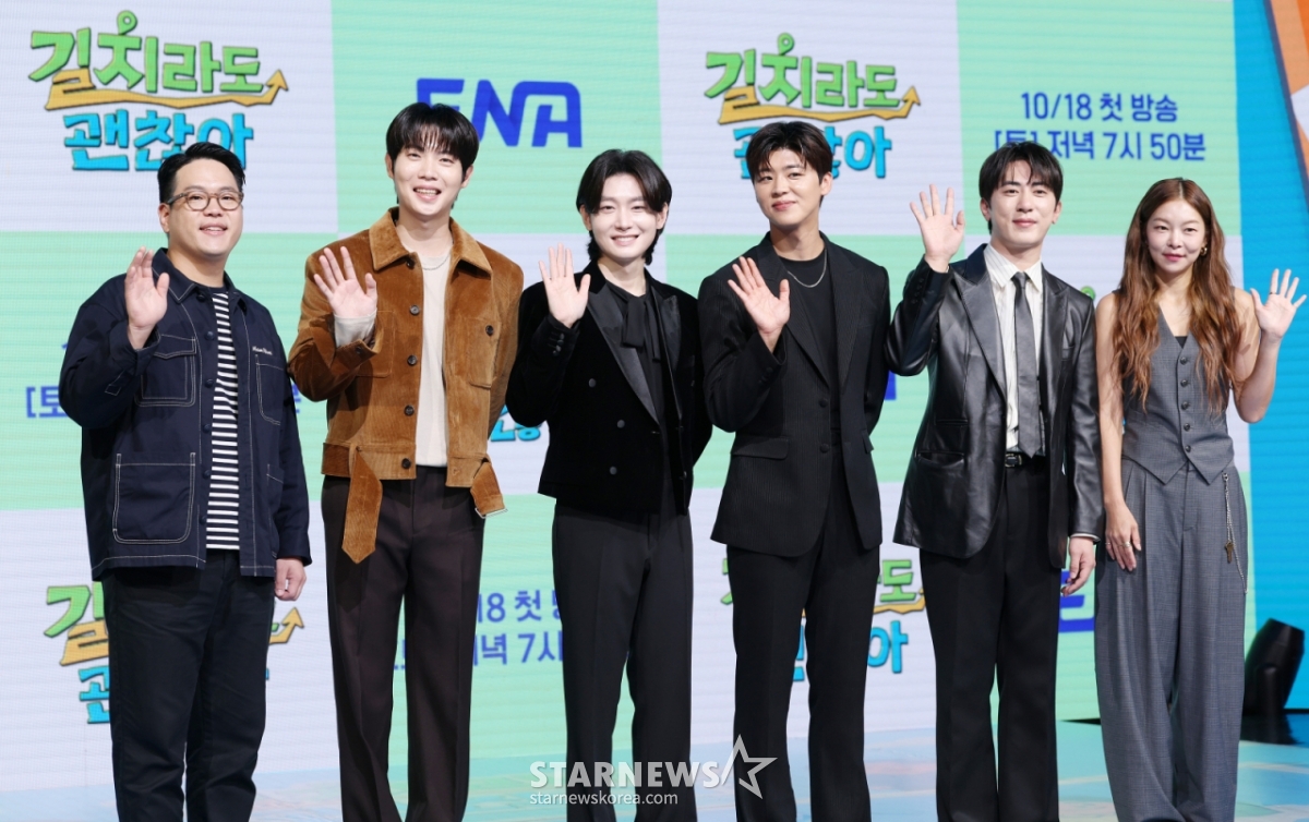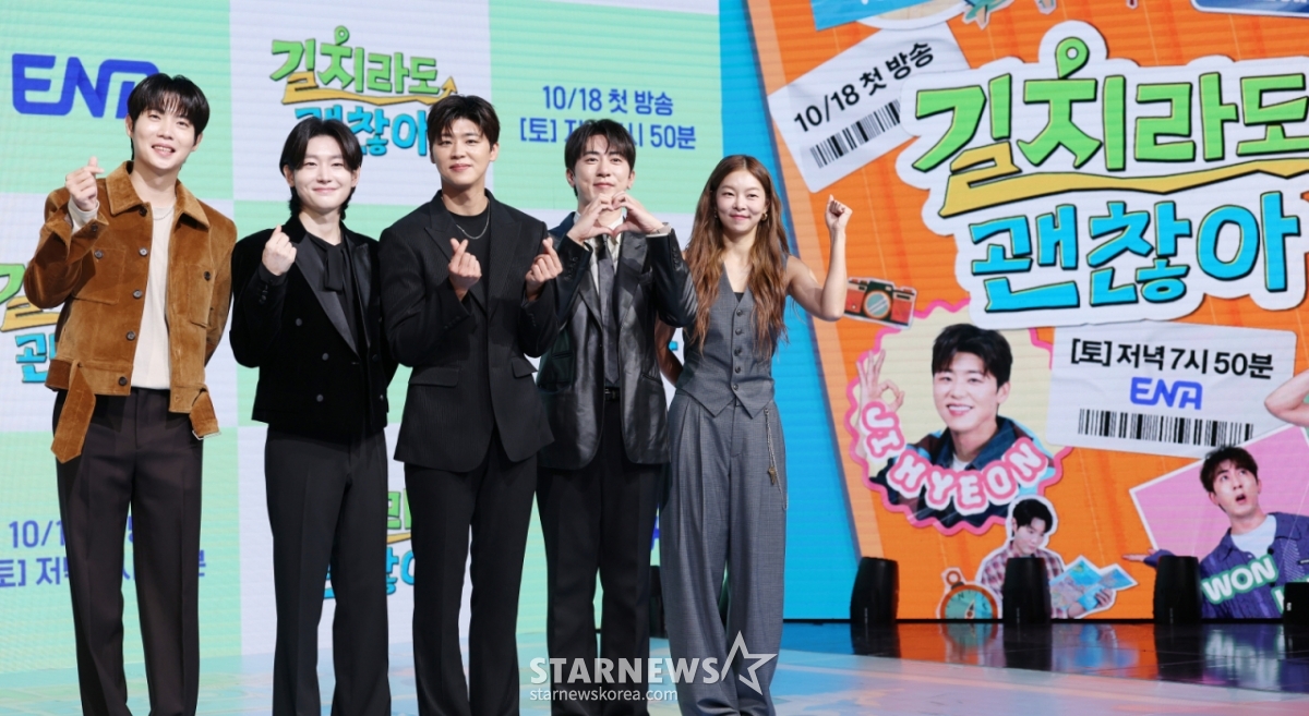 16일 서울 상암DMC푸르지오 S-city 쇼킹케이팝센터에서 ENA 예능 프로그램 '길치라도 괜찮아' 제작발표회가 진행됐다. 행사에는 공대한 PD, 모델 송해나, 개그맨 김원훈, 가수 박지현, 손태진, 김용빈이 참석했다.