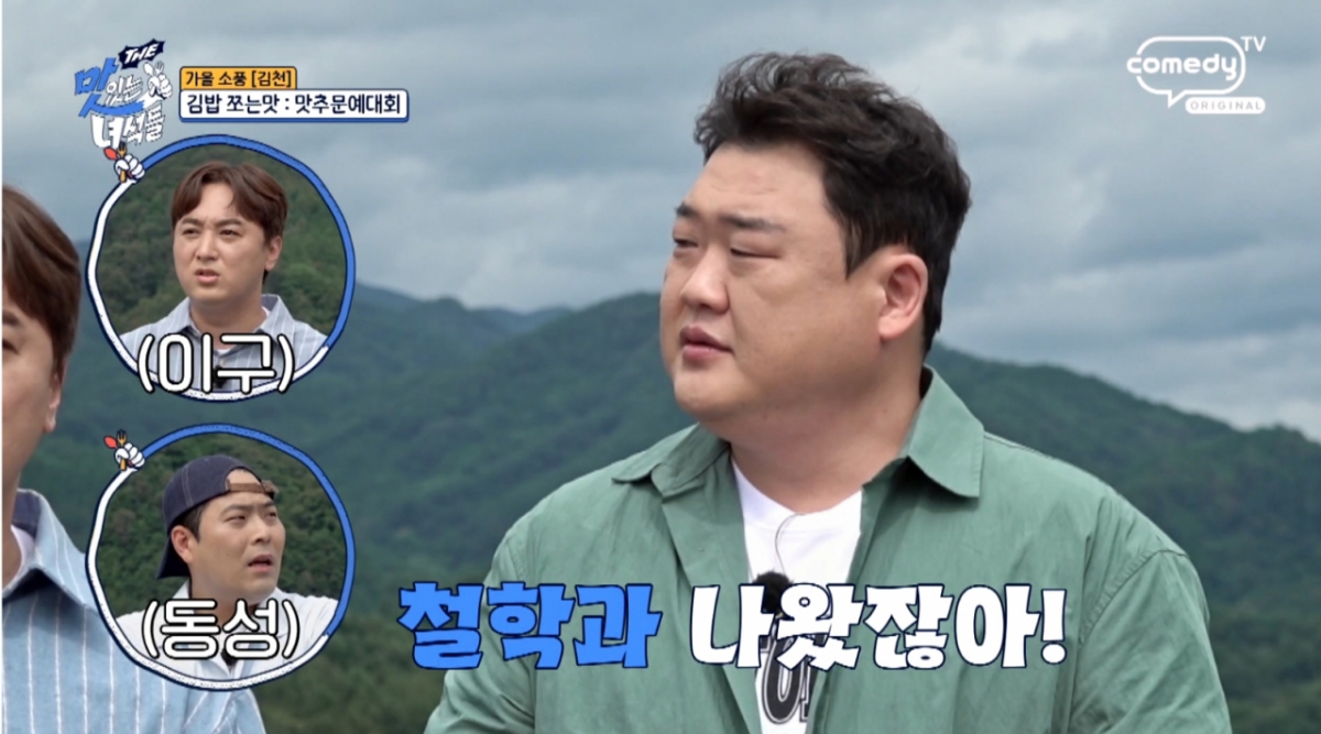 이에 문세윤과 황제성, 김해준은 "김준현이 철학과를 나왔다. 강점이 있겠다"며 자신들이 불리한 상황임을 토로한다. 이어 김해준은 "여기서 김준현이 우승 못 하면 학비를 땅에 버린 거다. 돈을 바닥에 던지고 다닌 셈"이라고 말해 웃음을 자아낸다.