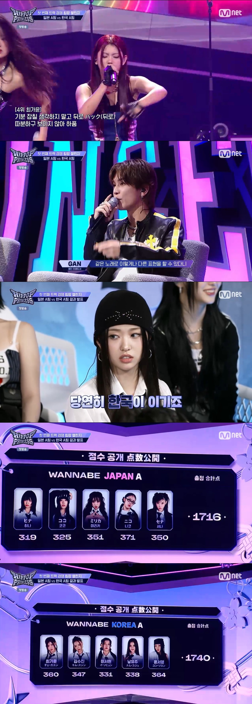 뒤이어 한국 A팀 무대가 진행됐다. 소연은 "이 팀은 누가 안 보였다는 것도 없이 다 잘했다. 난 진짜 처음 본다"라며 "서영 친구 보면 내 옛날이 생각난다. 조금 에너지를 내려놓을 줄도 알아야 한다"라고 피드백했다. 일본 A팀의 총합은 1706점, 한국 A팀의 총합은 1740점으로 한국 A팀이 승리했다.