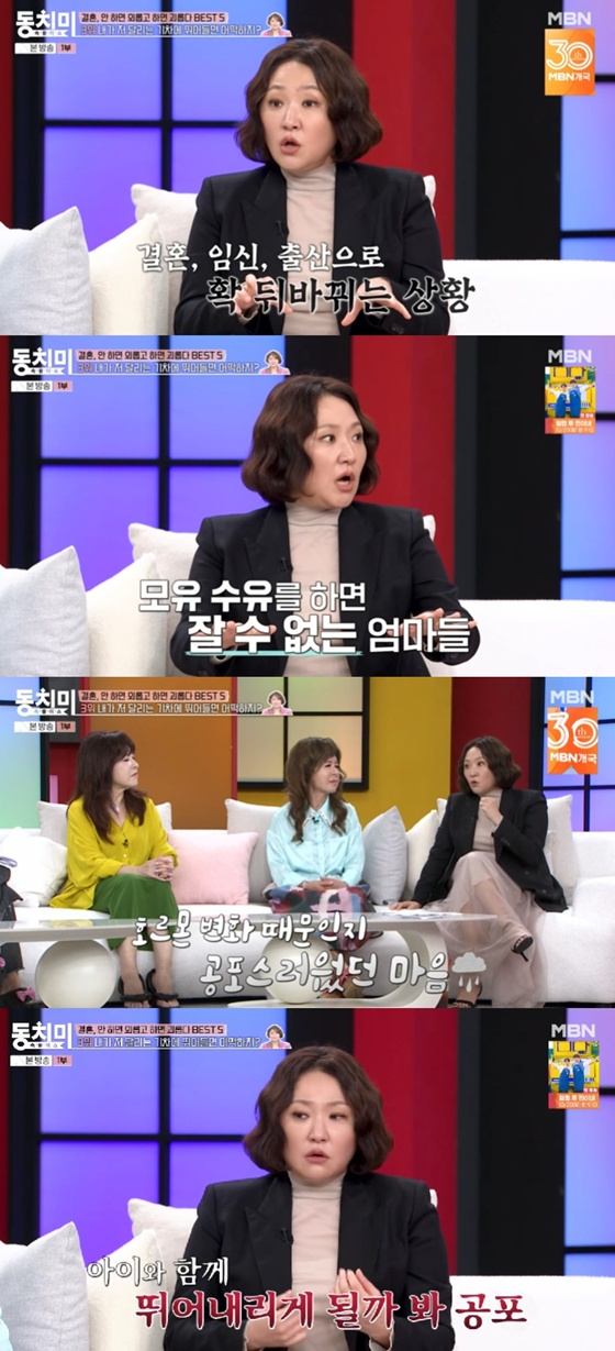 그는 "가만히 있으면 모성애가 생기는 줄 알았다. 내 아인데 내가 사랑하지 않은 건가 싶어서 죄책감이 몰려왔다. 자꾸 그 힘든 마음을 누르다 보니까 아파트 6층에 살고 있었는데, '내가 갑자기 아이랑 갑자기 뛰어내리면 어쩌지?' 하는 생각을 했다"고 밝혔다.