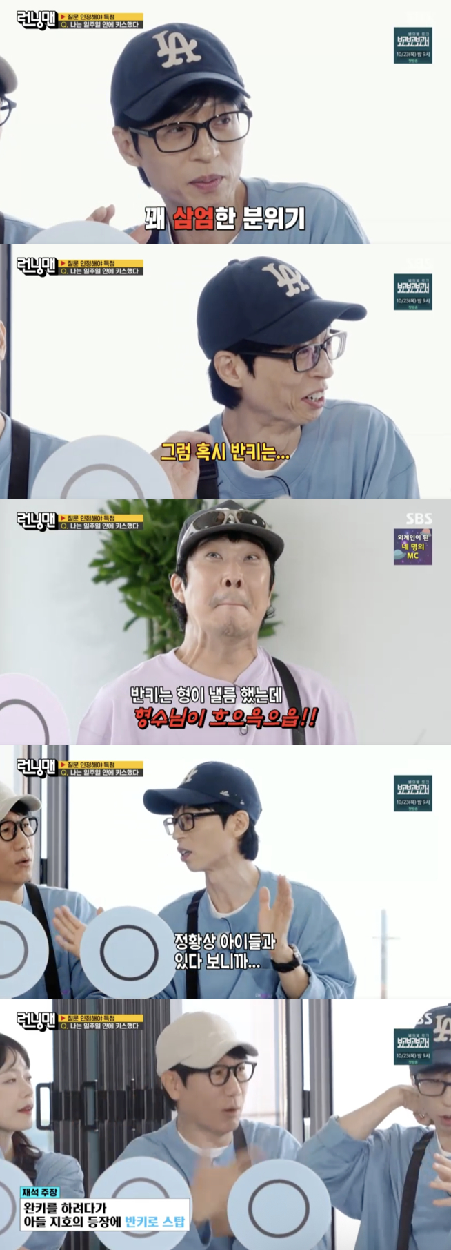 이에 유재석은 "정황상 아이들과 있다 보니까 완키(완전한 키스)를 하려다가 아이들 때문에 못할 상황이 있다"라며 자신이 생각하는 '반키'의 의미를 진지하게 설명했다.