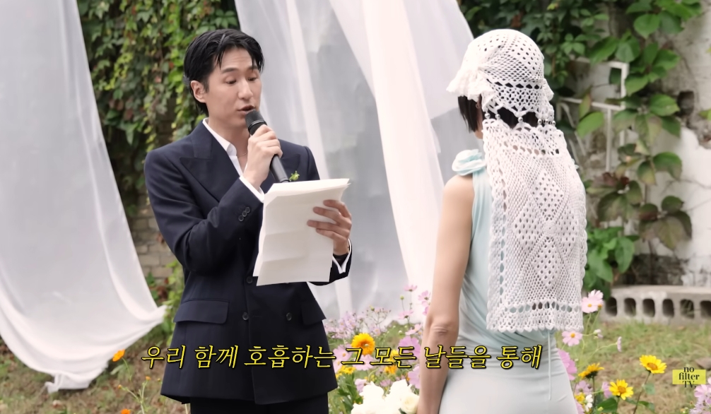 게재된 영상에는 지난 3일 진행된 김나영과 마이큐의 결혼식 현장이 담겼다. 마이큐와 김나영은 이날 소망잇는교회 태원석 담임목사의 주례 아래 결혼식을 올렸고, 각자 준비한 편지를 읽으며 영원한 사랑을 약속했다.