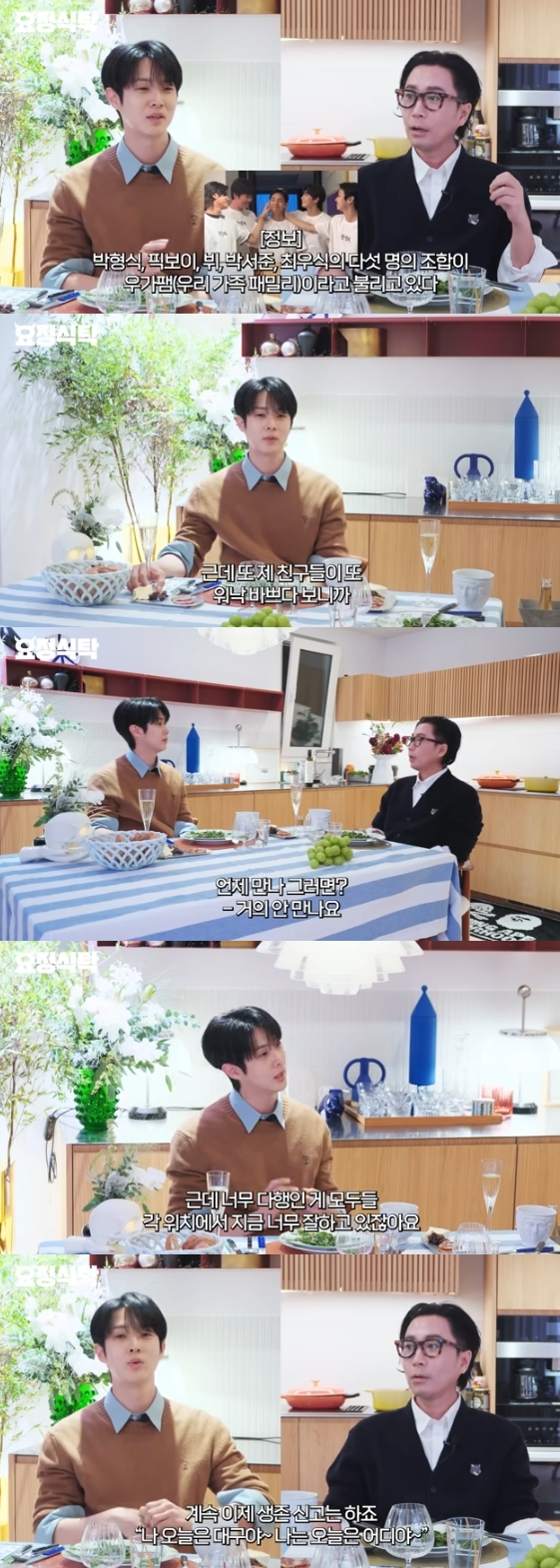 정재형은 "안 친하니?"라고 농담 섞인 질문을 던졌고, 최우식은 "그냥 친구들인데 어떻게 하다 보니까 모임명까지 생겨버렸다. 그냥 친구들끼리 한 명이 누가 너무 좋아서 데리고 오면 같이 본다. 같이 만나는 시간이 요즘에는 더 드물다. 다들 바쁘다 보니까"라고 답했다.