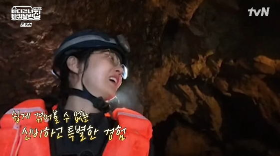 배우 장나라가 지하 100m 자연 동굴의 장엄함에 입을 다물지 못했다.