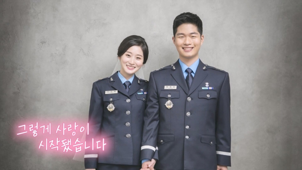 두 사람의 러브스토리도 드라마 같았다. 공군 남편이 군 생활 2년 차일 때 아내가 1년 차 신입으로 들어왔다. 아내가 부서를 돌며 인사할 때 두 사람은 처음 만났다. 남편은 "이 여자다"고 생각하며 처음 만난 날 이미 첫눈에 반했다고 전했다. 이에 아내는 "저도 호감이 있었다. '태양의 후예'를 보고 입대했는데 사무실에 '유시진 대위' 같은 사람이 있더라"며 아내 역시 이미 콩깍지가 꼈음을 밝혔다.