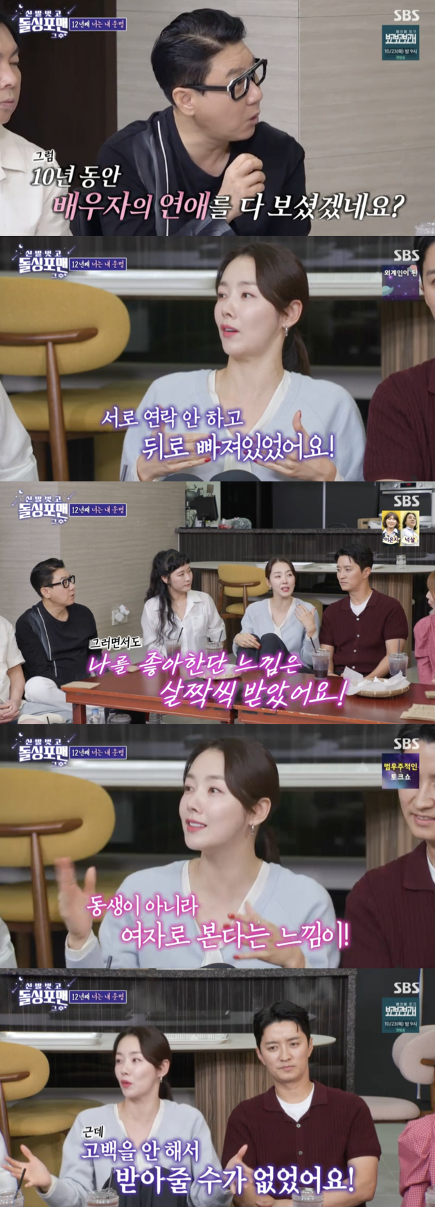 아무리 친한 오빠여도 그럴 수 없었다"고 회상했다. 그러면서도 "그러면서도 나를 좋아한다는 느낌을 받았다. 동생이 아니라 여자로 본다는 느낌이 살짝살짝 들기는 했다. 그런데 고백을 안 해서 받아줄 수가 없었다"고 털어놓았다.