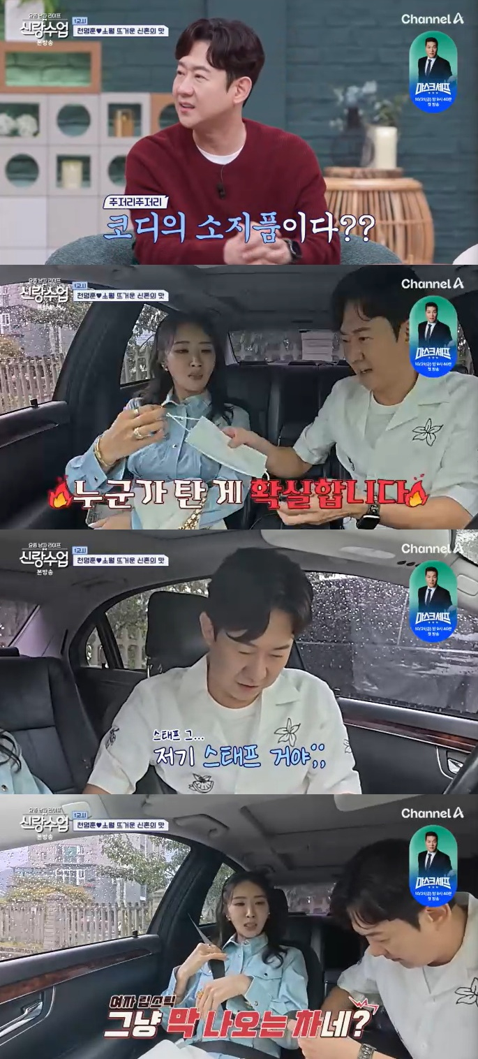 천명훈은 "스태프가 이동하면서 탄 적이 있다. 스태프의 것이 아닌가 싶다. 나는 진짜 몰랐다"라며 억울해했다. 소월이 "수상한데. 여자 립스틱이 막 나오는 차네"라고 했지만 천명훈은 "에헤이 그런 거 아냐. 그럴 리가 없어"라며 진땀을 뺐다.