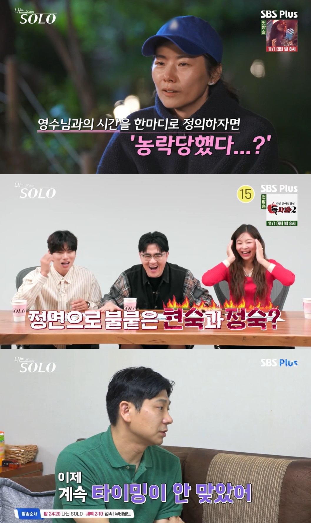 대화를 마친 후, 영숙은 "한마디로 표현하면 농락당했다. 광수에 대한 마음을 내려놨는데 농락당한 거 같은 느낌이 들더라"고 눈물을 흘렸다.