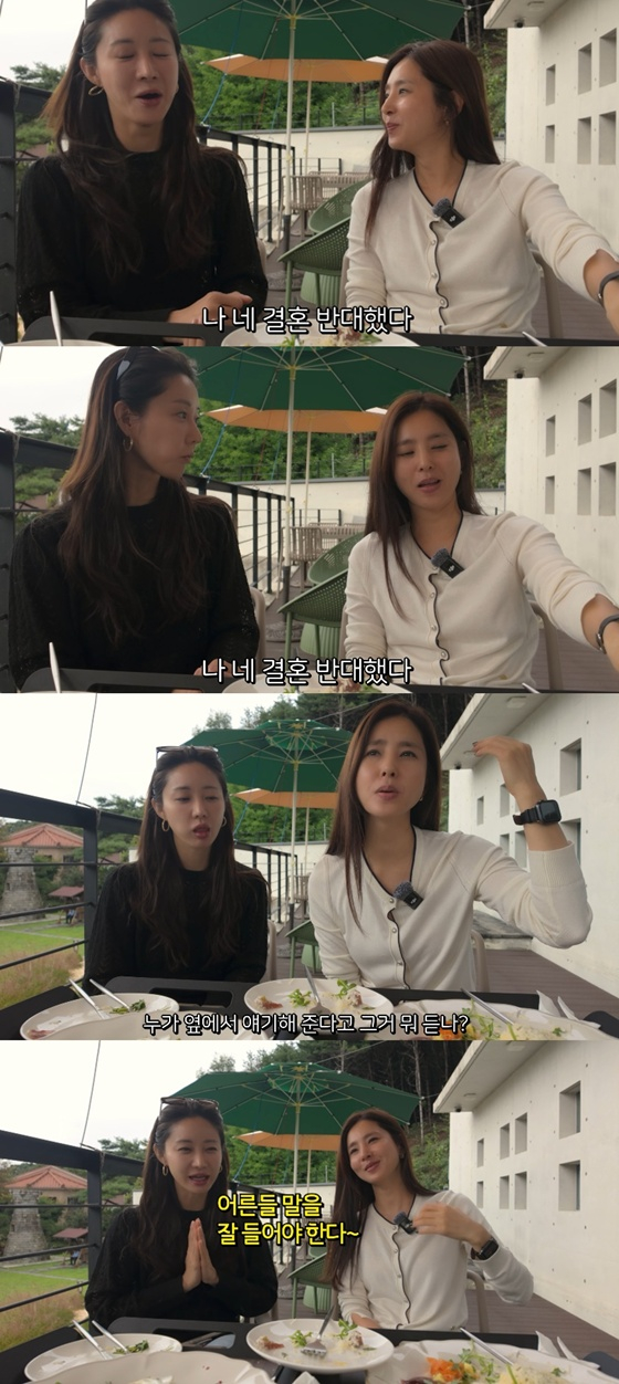 이에 한채아는 "이제 와서 하는 말이지만 네 결혼 반대했다?"라고 말하며 웃었다.