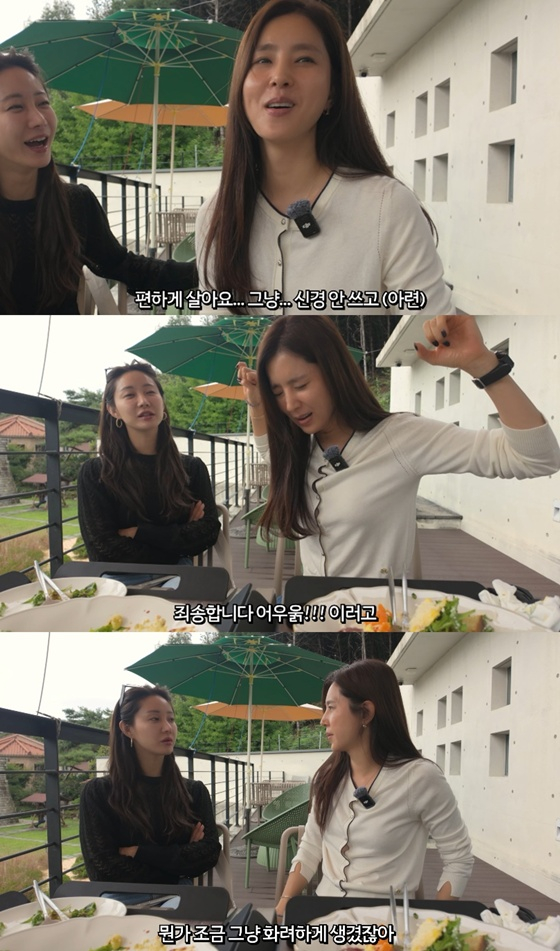 이날 한그루는 "스포츠센터에 가서 홀라당 벗고 샤워도 하고 하니까 알아보시는 분들은 신기해한다. 안 부끄러워하는걸. 언니도 그런 스타일"이라며 "심지어 저는 편해도 그런 소리는 안 내는데 언니는 '으억' 이러면서 어르신 같은 소리를 낸다"고 말했다.