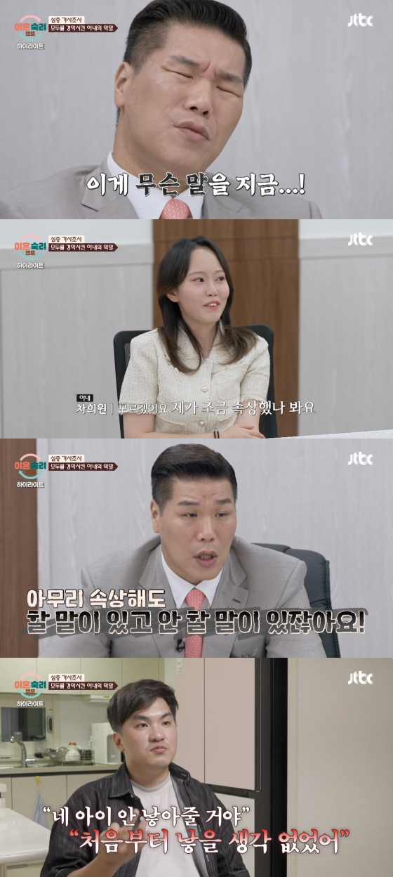 이에 아내는 "계속 싸웠다. 그래서 집을 나갔고 바로 수술했다. 내 뱃속 새끼라 얼마나 많이 고민했는지 아냐"고 받아쳤다.