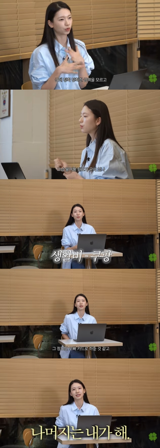 이어 "생활비 같은 건 어떻게 하냐면 쿠팡에서 장 보거나 밥 시켜 먹는 것 정도만 오빠 카드로 하고 나머지는 저도 나쁘지 않게 벌기 때문에 필요한 건 제 카드로 다 한다. 걱정하지 말라"라고 덧붙였다.