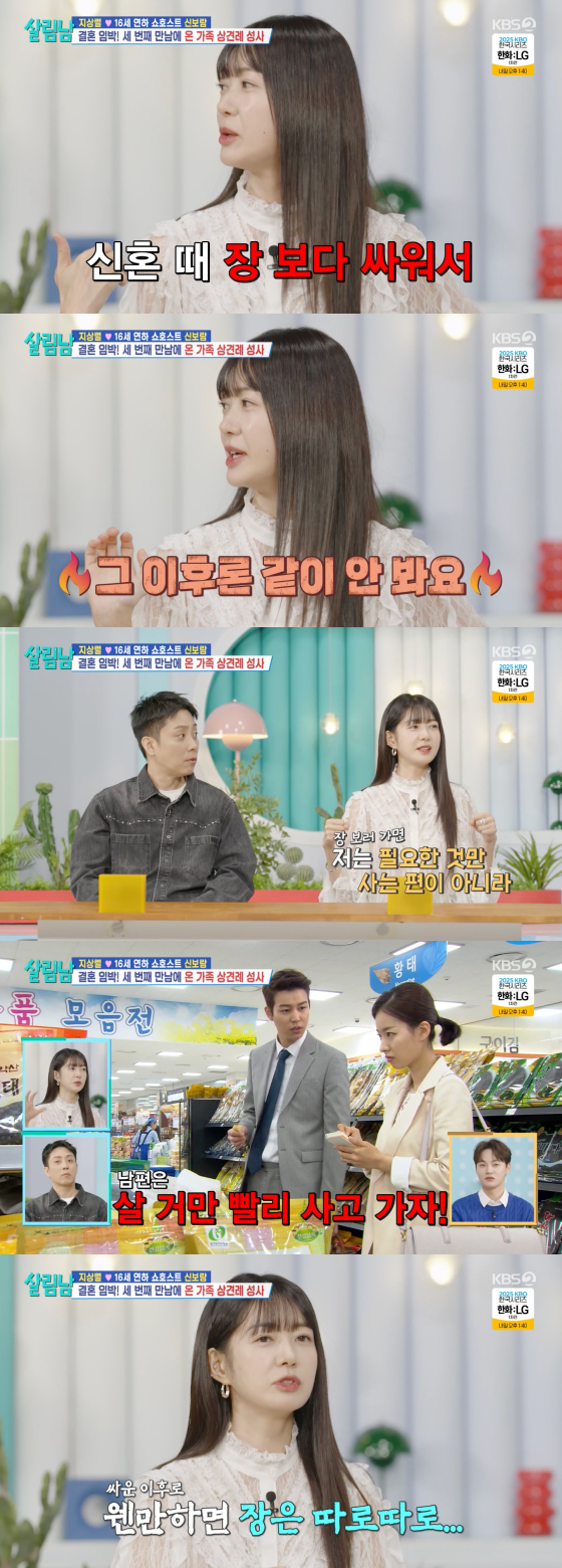 이어 "저는 필요한 것만 사는 스타일이 아니라 구경하면서 장을 보는 편인데 남편은 살 것만 사서 가기를 원한다"고 털어놨다.