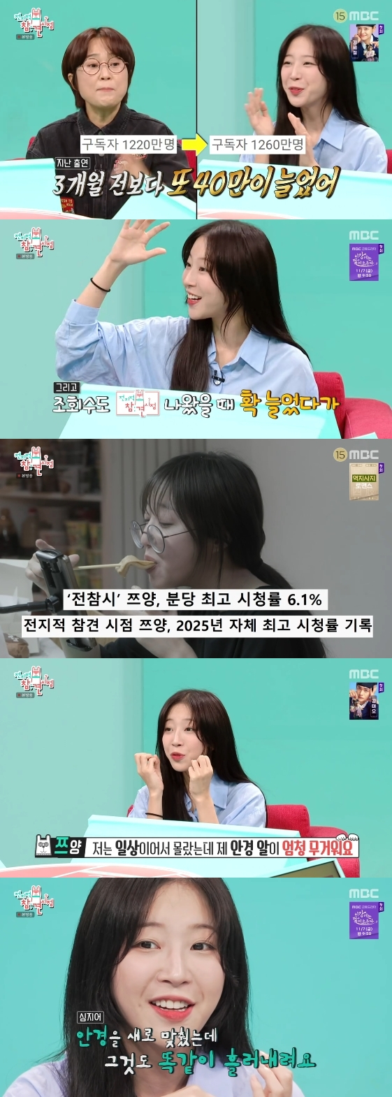 그런가 하면 쯔양은 방송 출연 후 '안경' 때문에 악플 세례를 받았다고 털어놔 시선을 모았다.