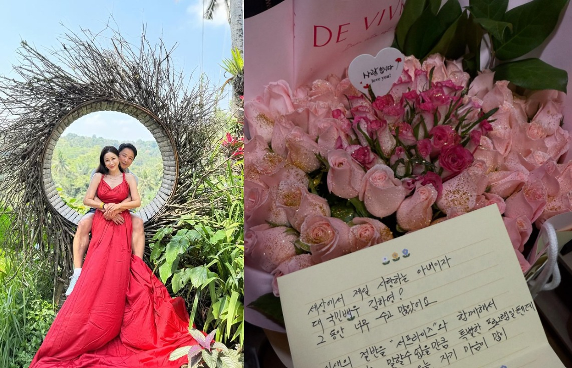 공개된 사진 속에는 아름다운 꽃다발과 함께 김하영 남편의 편지가 담겨있었다. 해당 편지에는 '세상에서 가장 사랑하는 아내이자 대 국민배우 김하영. 그동안 너무 수고많았어요'라는 내용이 적혀있어 감동을 안겼다.