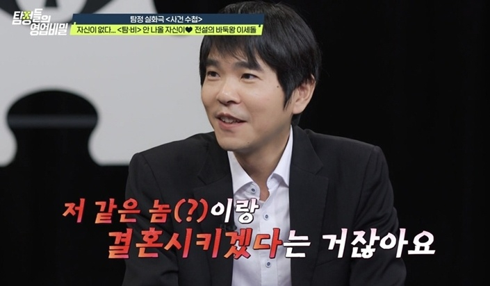한편, 이날 방송에는 예능계 다크호스를 꿈꾸는 '전설의 바둑왕' 이세돌이 일일 탐정으로 출격한다. 그는 "'탐비'가 완전 제 스타일"이라며 추리의 쾌감에 흠뻑 빠진 '도파민 탐정'의 면모를 드러낸다. 곧 결혼 20주년으로 19세 딸을 둔 이세돌은 "딸이 바둑기사와 결혼한다면 어떨 것 같냐"는 질문에, "저 같은 놈은 절대 안 된다"며 일말의 고민도 없는 대답으로 폭소를 자아낸다. 이어 "이창호·조훈현·이세돌 중 사윗감으로 한 명만 고른다면?"이라는 기습 질문에 짧은 고민 끝 예상 밖의 대답을 내놓으며 스튜디오를 초토화시킨다.