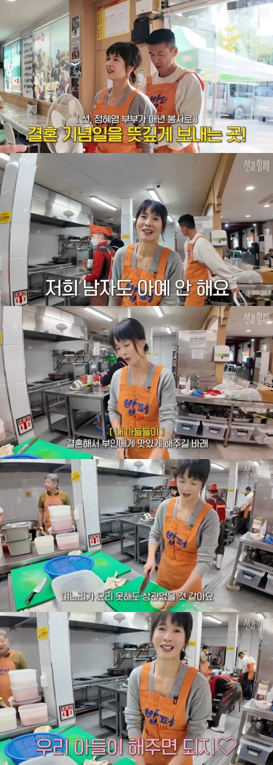 공개된 영상에서 션 정혜영 부부는 결혼기념일을 맞아 노숙자, 독거노인, 무의탁 노인 등에게 점심을 제공하는 '밥퍼' 시설을 찾아 봉사활동을 진행했다.