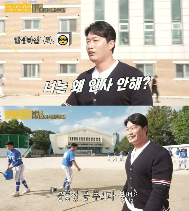 영상 속 오승환은 달려 나와 인사하는 야구부 후배들의 인사에 "안녕"이라며 반갑게 손을 흔들며 친근한 동네 형 같은 매력을 드러냈다. 오승환은 "갑자기 이렇게 인사를 하면 어떡해"라며 쑥쓰러운 듯한 모습을 보이다가도 이내 "너는 왜 인사 안 하냐"며 장난을 건네 웃음을 자아냈다.
