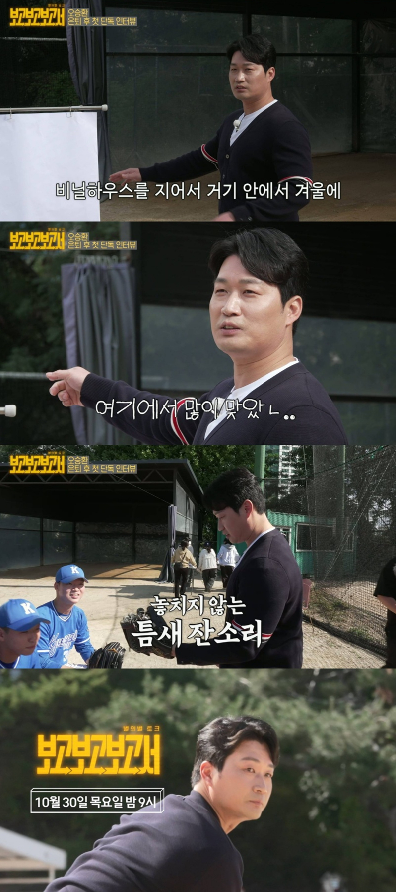 27일 SBS에 따르면 오는 30일 방송되는 SBS '별의별 토크 : 보고보고보고서'(이하 '보고보고보고서')에서 오승환은 야구 인생과 은퇴 후의 솔직한 일상을 공개할 예정이다. 본 방송에 앞서 공개된 '보고보고보고서' 예고 영상에는 모교를 찾은 오승환의 모습이 담겨 기대를 높였다.