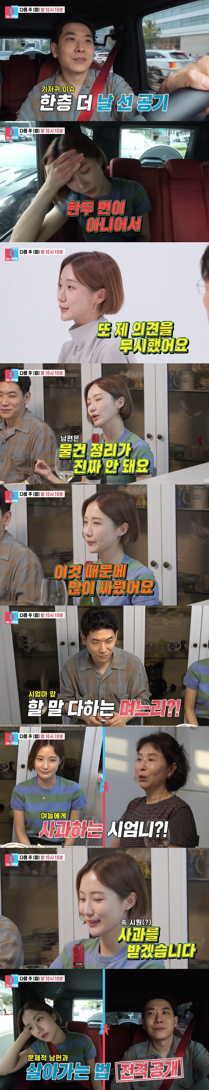 오진승 부부의 문제는 다음주 방송에서 더 크게 다뤄질 예정이다. '동상이몽2' 측은 11일 3일 예고편에서 오진승이 아내인 김도연의 기저귀 갈이 등의 부탁을 무시한 적이 한 두번이 아니며 고집 끝판왕이라고 전했다. 김도연은 평소 오진승이 치우는 걸 못 한다며 시부모에게 불만을 쏟아냈고, 시어머니는 김도연에게 "부족한 아들을 용서해 달라"라고 사과했다.
