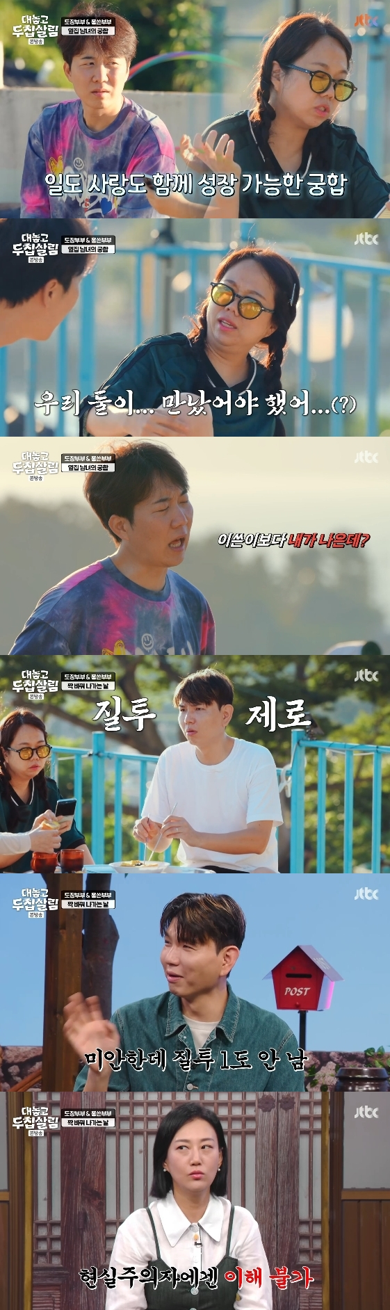 28일 방송된 JTBC 예능 프로그램 '대놓고 두집살림' 2화에는 장윤정 도경완, 홍현희 제이쓴 부부가 방송 최초로 짝을 바꿔 하루를 보내는 모습이 그려졌다.